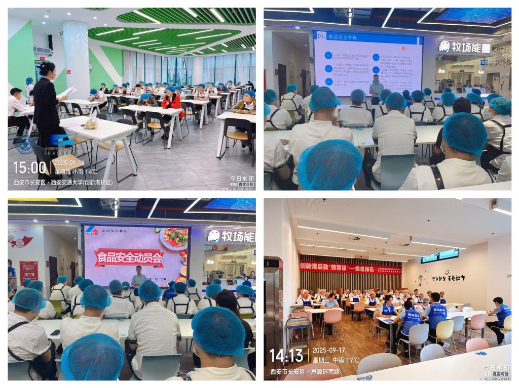 食物平安学问再进修。核心组织各食堂向从业人员开展食物平安学问宣传培训勾当,环绕餐饮办事卫生操做规范、“十同一、六到位”办理模式等内容,通过旁不雅食物平安宣传片、开展食物平安学问问答、全面提拔从业人员的专业学问及技术程度。